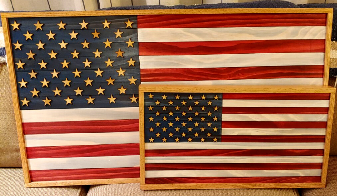 Our custom, rustic USA Flags come in a variety of sizes. We offer Small, Medium, Large, and X-Large.